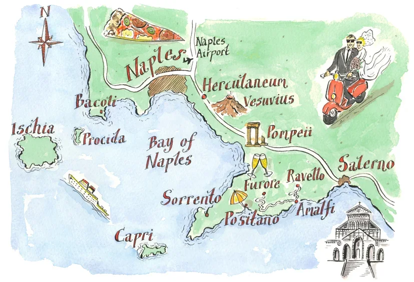 Naples is located around 1-1.5 hours from Ravello. We would suggest taking a private transfer or taxi from the airport as public transport can be difficult.